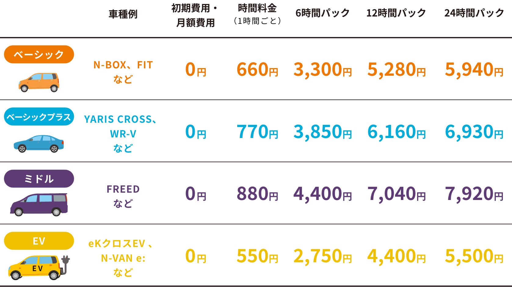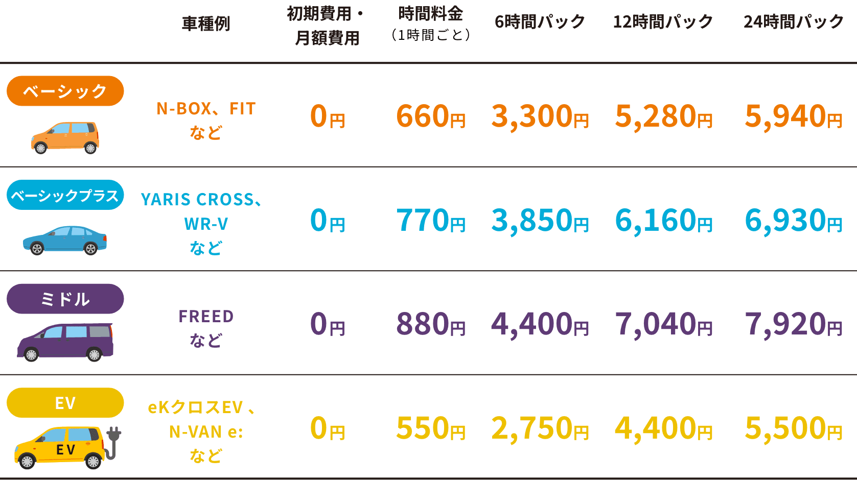 ※1時間あたり660円~はガソリン車の料金です。EVは利用料が異なります