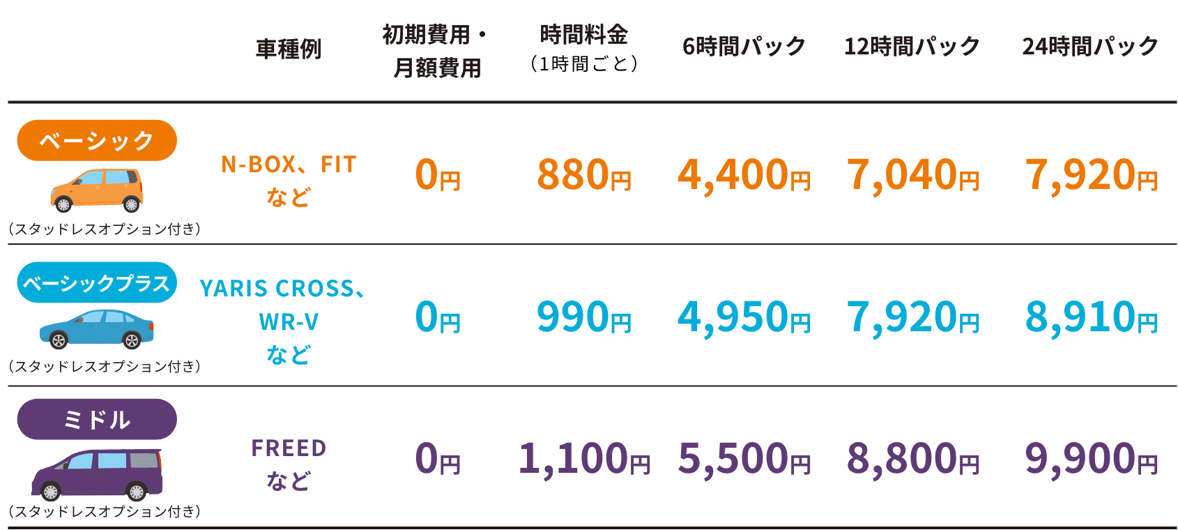 ※EVなどを除く、一般的なガソリン車の最安クラス料金です