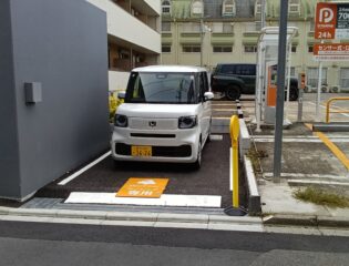 当ステーションの駐車場はやや狭くなっております。入出庫の際は、前後左右の安全を十分にご確認のうえ、ご利用ください。