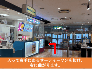 船堀駅からー番近い北側の入口から入り、右手にあるサーティーワンを過ぎて左に曲がった先にあるエレベーターで屋上階へ上がります。