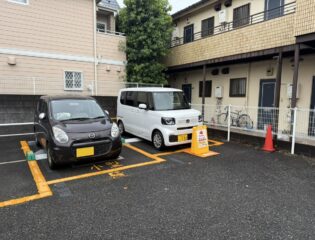 [出発時]車両を駐車スペースから出した後、必ずスタンドサインを駐車スペース内に移動してください。