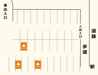 MaaS Carのステーションは駐車場内【105番・119番・122番車室】でございます。