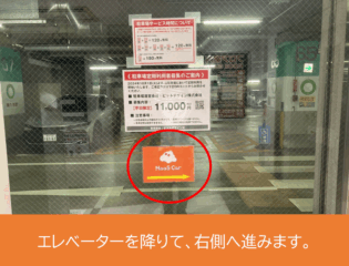 駐車場棟の駐車場直結エレベーターをご利用ください。
