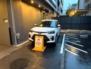 [出発時]車両を駐車スペースから出した後、必ずスタンドサインを駐車スペース内に移動してください。